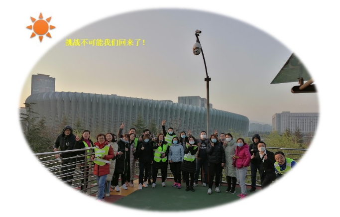 行走中大家克服體力不支,互相鼓勵(lì),互相攙扶,在即將到達(dá)終點(diǎn)時(shí)舉杯相慶,不知不覺(jué)中天空開(kāi)始泛白,黑夜?jié)u漸消退,就像我們?cè)谔綄?nèi)在的路上一樣,每個(gè)人的內(nèi)心都更加的堅(jiān)定也更加的清晰。