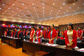 本次會(huì )議由李建東、梁鳳丹主持并做精彩的開(kāi)場(chǎng)白。會(huì )議現場(chǎng),女同事們的古典旗袍搭配男同事們的帥氣西裝,每人身披紅色圍巾,使得會(huì )場(chǎng)內充滿(mǎn)喜慶的氣氛,在集體誦讀公司三個(gè)理念的激昂氛圍中大會(huì )正式開(kāi)始……