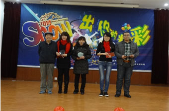 晚宴上,公司高層和與會員工共同舉杯,一起慶賀滿載收獲的2013年,一起歡迎充滿希望的2014年。同時也頒發(fā)了聯(lián)歡會的各個團體及個人獎項,“博學(xué)團隊獎”的桂冠由黃隊摘得;“精氣神兒團隊獎”則由紅隊獲得;“最佳設(shè)計團隊獎”和“游戲王團隊獎”由藍隊包攬。個人獎方面,“最上鏡模特獎”由綠隊的卜新春獲得,“最有紅毯范兒獎”由紅隊的張風(fēng)爽獲得,“移動的百科全書稱號獎”則由綠隊的周海超獲得。所有獲獎人員在領(lǐng)取豐厚獎品、表達開心的同時,都不約而同地表達了對給予自己充分支持的、通力合作的團隊全體成員的感謝!