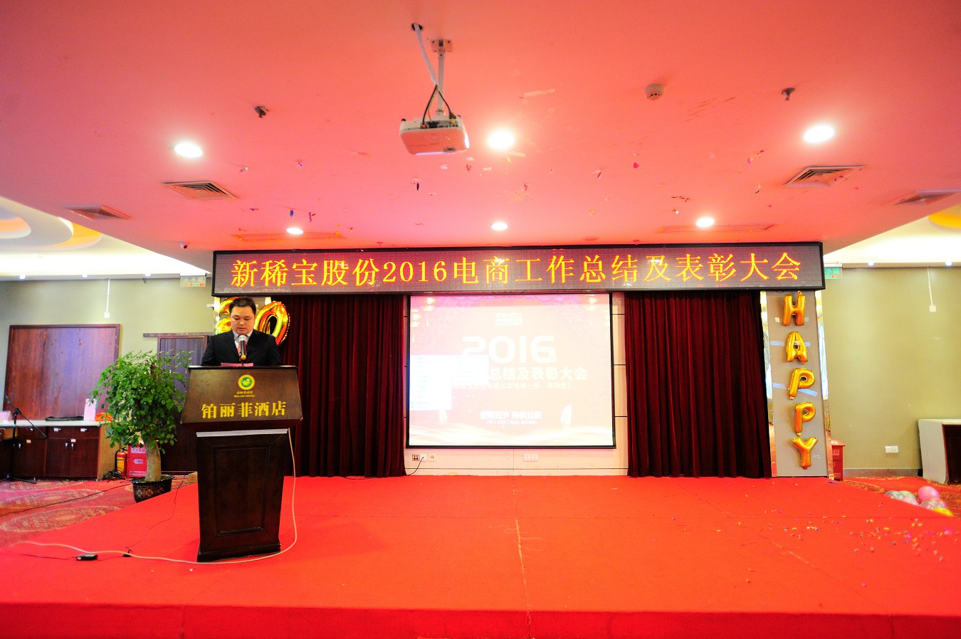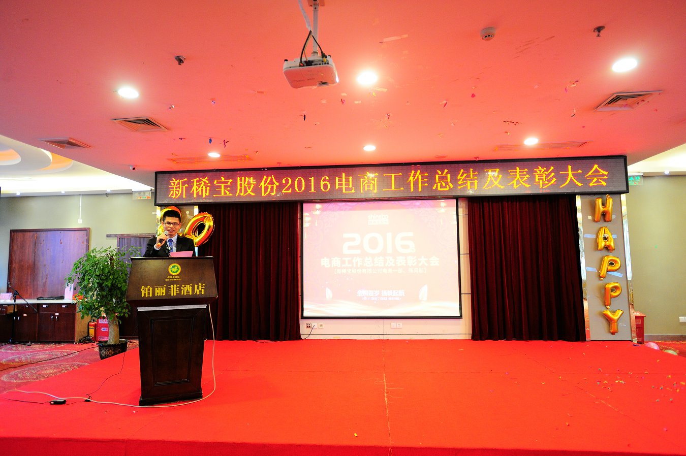 綠城南寧金雞賀歲,電商商網(wǎng)揚帆起航。2017年1月13日,新稀寶股份2016年度電商及商網(wǎng)工作總結暨表彰大會(huì )在廣西南寧鉑麗菲酒店正式召開(kāi)。電商事業(yè)部一部、商網(wǎng)部全體精英共計80余人參加了此次盛會(huì ),新稀寶股份有限公司副總經(jīng)理-鄭朝霞女士、高層經(jīng)理輪值主席-張秋峰先生、生產(chǎn)總監-王猛先生、電商事業(yè)部副經(jīng)理-李建東先生、南寧分公司副經(jīng)理-陳文歡先生均出席了本次會(huì )議。
