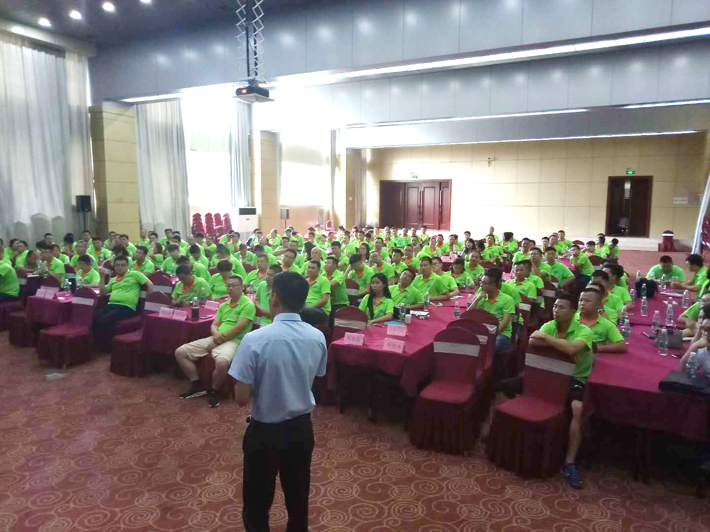 7月11日下午,銷(xiāo)售將士們終于滿(mǎn)心歡喜地抵達濟南,分別乘坐3輛大巴前往南部山區華越泰瀛酒店,一路上相互問(wèn)候、相互取經(jīng),開(kāi)心暢聊。抵達酒店后,全體將士都收到了事業(yè)部為大家準備的統一著(zhù)裝,為期三天的會(huì )議即將在軍事化的訓練和要求中進(jìn)行,每天清晨的早操都給我們的一天注入了新鮮的活力。